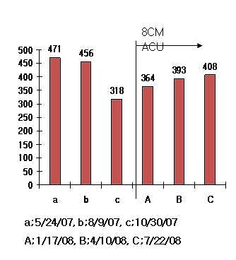 -The 1stinvestigation of CD4 counts after13 days trials (3 Acu-trials=Jan 2, 08-Dec 20,07) shows no difference from intake CD4 counts. After 1st trials for 13 days the 1stinspection of CD4 shows nearly no difference from intake data of 343.