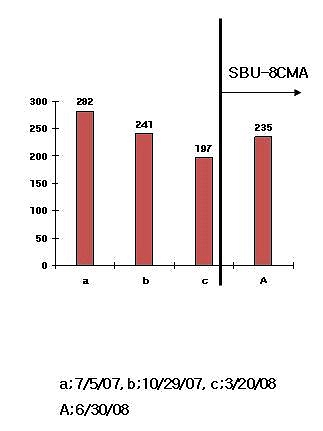 It is noteworthy that during the first trials, the patient said ‘ I feel so good whenever I receive 8CMA trials.’ After 2 month trials, the 1st inspection’s CD4 count of 519 was not so different from the previous number of 520.