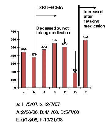 After receiving 8CMA treatment for over two months, the 1stblood analysis showed drastic increase in CD4 by nearly 100 points. The 2ndblood analysis also showed great increase by 82 points after getting one month’s 8CMA trials.